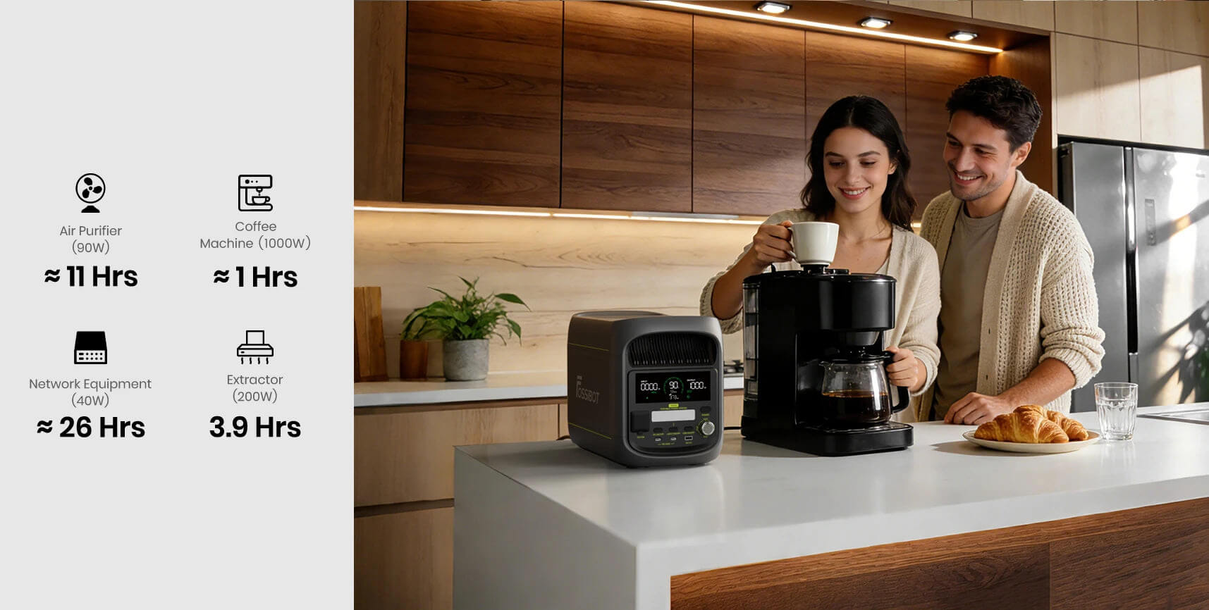 Защита хрупких электрических изделий от любого сбоя питания с помощью Fossibot F1800. Зарядная станция может работать в режиме источника бесперебойного питания (ИБП), предназначенного для защиты чувствительных и ценных электрических устройств. В Fossibot F1800 режим UPS работает так, что станция стоит между сетью и подключённым оборудованием и постоянно контролирует наличие входного напряжения. Когда сеть присутствует, питание идёт напрямую через внутреннюю схему Bypass, а батарея параллельно заряжается без участия инвертора. Это обеспечивает минимальную задержку переключения и стабильную работу чувствительной техники. Если питание пропадает или выходит за пределы допустимого диапазона, станция мгновенно переводит нагрузку на инвертор от батареи, обеспечивая непрерывность работы без скачков и перерывов. В режиме Bypass инвертор не задействован и нагрузка питается напрямую от сети, что уменьшает потери и повышает эффективность, а в режиме UPS инвертор берёт на себя полное питание в случае сбоя сетевого входа.