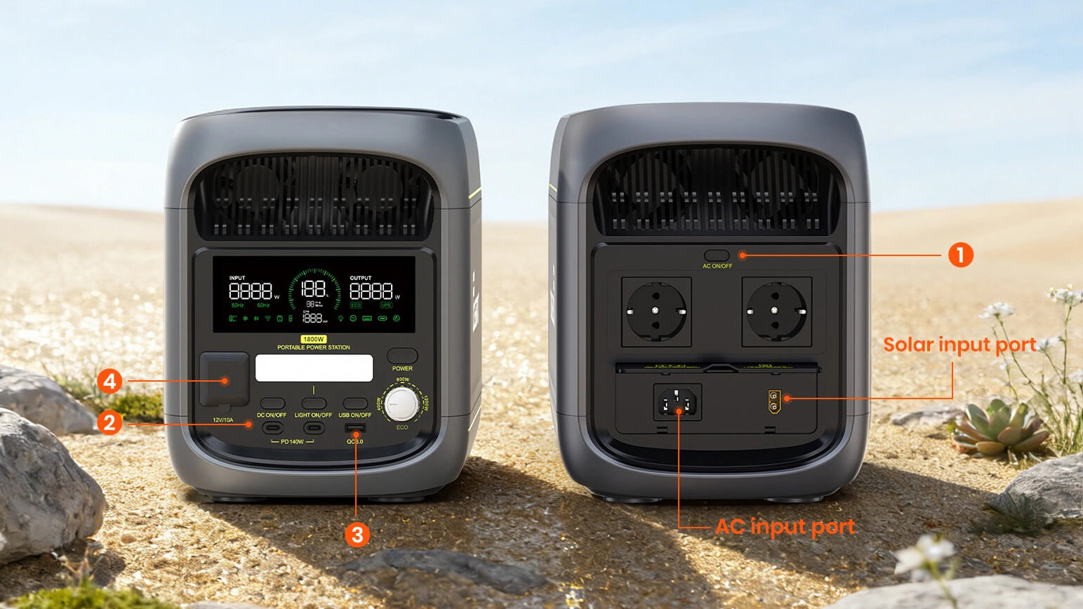 Портативная зарядная станция Fossibot F1800 сочетает в себе высокую энергоэффективность литий-железо-фосфатного аккумулятора (LiFePO4) ёмкостью 1024 Вт·ч, рассчитанного на более чем 4000 рабочих циклов с сохранением 80% ёмкости, и передовую систему управления BMS со встроенным MPPT-контроллером для максимальной стабильности работы. Силовая установка базируется на инверторе с чистой синусоидой мощностью 1800 Вт, способном выдерживать пиковые нагрузки до 3600 Вт, обеспечивая питание через две розетки переменного тока 220–240 В, автомобильный порт 12 В/10 А, а также современные интерфейсы, включая два порта USB-C с индивидуальной выходной мощностью до 140 Вт (при одновременном использовании ограничение составляет 30 Вт) и быстрый порт USB-A на 18 Вт. Система зарядки устройства отличается рекордной скоростью: входная мощность 1200 Вт от сети позволяет полностью восстановить энергию за 68 минут, поддержка солнечных панелей до 500 Вт (12–60 В, 15 А) обеспечивает автономность за 2 часа, а комбинированный метод AC+Solar суммарной мощностью 1700 Вт сокращает время полного заряда всего до 40 минут. Благодаря интегрированным модулям WiFi и Bluetooth, станция легко интегрируется в цифровую экосистему для дистанционного мониторинга и управления, что делает её надёжным и технологичным решением для профессиональных задач или обеспечения домашнего комфорта.