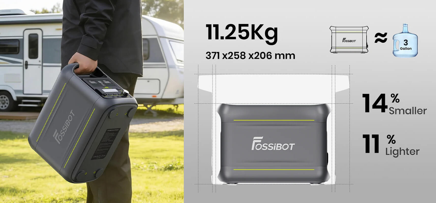 Зарядная станция Fossibot F1800 отличается компактными размерами 371×206×258 мм и весом всего 11,25 кг, что делает её лёгкой для переноски и удобной для использования в дороге, на кемпинге или в домашних условиях. Устройство рассчитано на работу в диапазоне температур от −10 до 40°C и безопасную зарядку при 0–40°C. Станция сертифицирована по стандартам FCC, CE, PSE, RoHS, UN38.3 и имеет документ MSDS, подтверждающий соответствие международным требованиям безопасности и экологической совместимости.