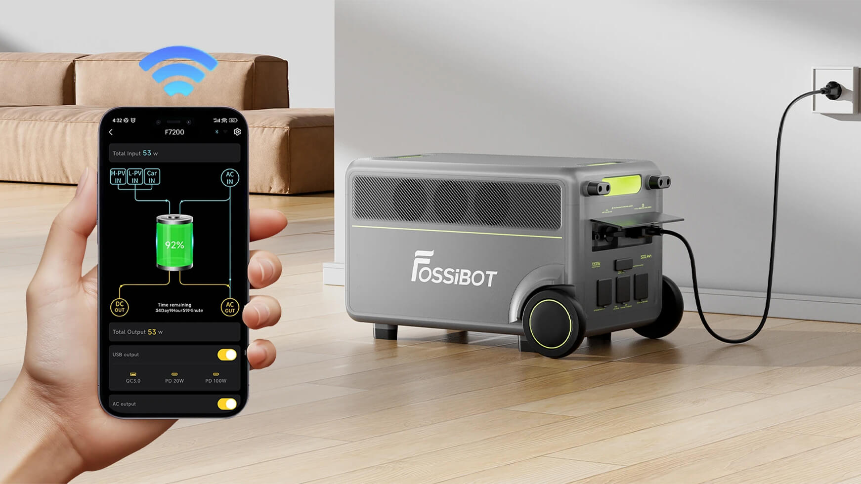 В случаях полного отключения электроэнергии, аварийных повреждений сети или почасовых графиков отключений Fossibot F7200 становится полноценным автономным энергорешением, способным поддерживать работу дома или бизнеса без перерывов. Емкость 6400 Вт·ч в базовой конфигурации и возможность расширения до 10 444 Вт·ч позволяют сохранять доступ к ключевым бытовым системам: холодильникам, насосам отопления, роутерам, освещению, котлам и кухонной технике. Мощный инвертор на 7200 Вт поддерживает одновременную работу энергоемких приборов — от электрочайника и микроволновки до стиральной машины или кондиционера. В периоды отключений электроэнергии станция удерживает стабильное напряжение без просадок и позволяет жить в привычном режиме даже при длительных перебоях в сети. Для украинских реалий, где сбои в энергосистеме случаются регулярно, это обеспечивает реальный запас автономности, способный поддерживать дом или работу офиса независимо от внешних обстоятельств.