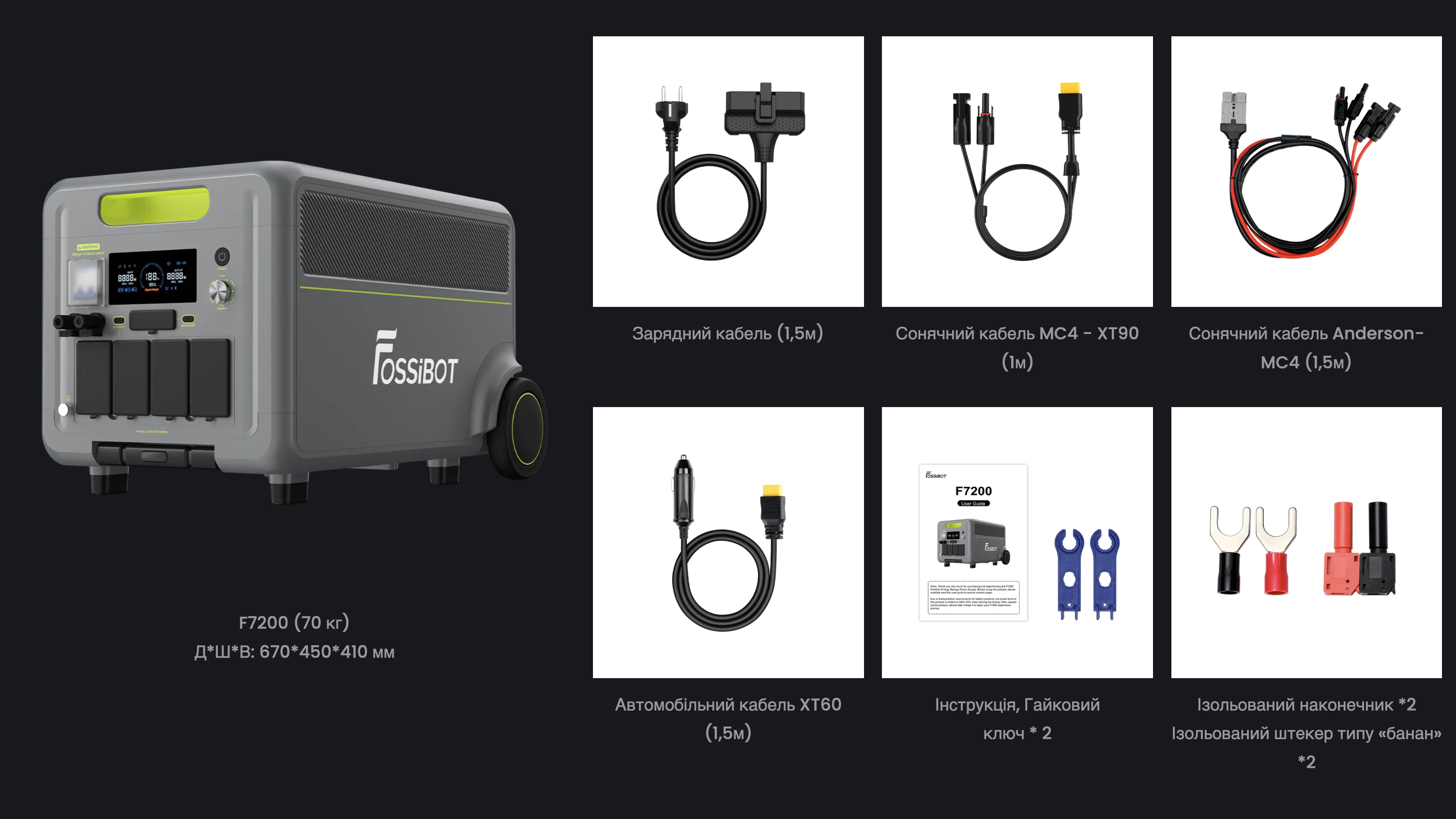 Fossibot F7200 — высокомощная портативная энергетическая система, созданная для профессиональной работы с резервным питанием: номинальная мощность выхода до 7200 Вт, базовая емкость блока батареи 5222,4 Вт·ч, возможность расширения системы до 15,66 кВт·ч с помощью дополнительных батарейных модулей. Это решение отличается выносливостью: аккумуляторная технология LiFePO4 рассчитана на более 6500 зарядно-разрядных циклов, а система поддерживает полноценную зарядку от сети, солнечных панелей или комбинацию источников для быстрого пополнения энергии. Fossibot F7200 поддерживает одновременную зарядку от переменного тока и солнечной энергии. Максимальная мощность AC-зарядки достигает ≈3000 Вт, что позволяет восстановить около 5,2 кВт·ч емкости менее чем за 2 часа. В режиме солнечной подзарядки устройство принимает до 2500 Вт в высоковольтном входе (120-450 В) или до 1200 Вт через низковольтный (12-50 В) вариант.