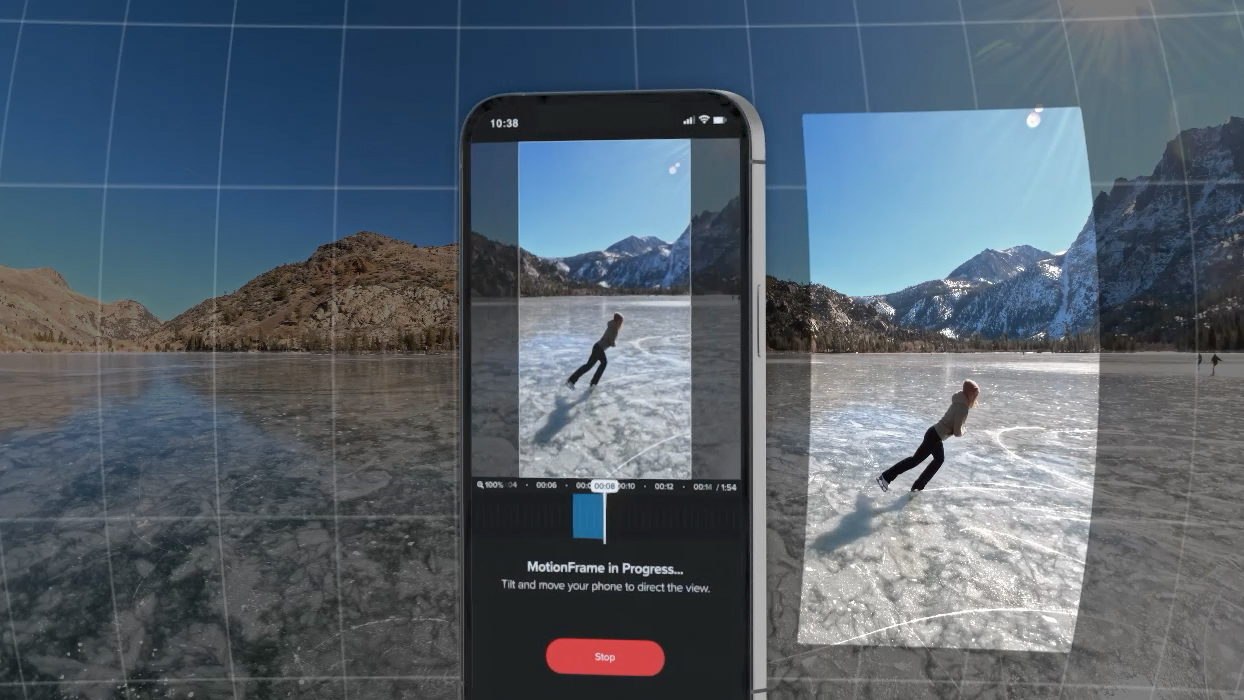 Устройство позволяет преобразовывать 360°-запись в обычное видео с помощью технологии перекадрирования (reframing). Вы можете выбирать нужные кадры, отслеживать объекты, добавлять динамические движения и переходы, а также комбинировать несколько режимов перекадрирования в одном клипе. Функция MotionFrame позволяет управлять ракурсом буквально движениями телефона: перемещайте его внутри 360°-видео, чтобы мгновенно найти идеальный кадр или изменить перспективу. Это делает процесс редактирования интуитивным и быстрым, позволяя создавать профессиональные видео без сложного монтажного софта.