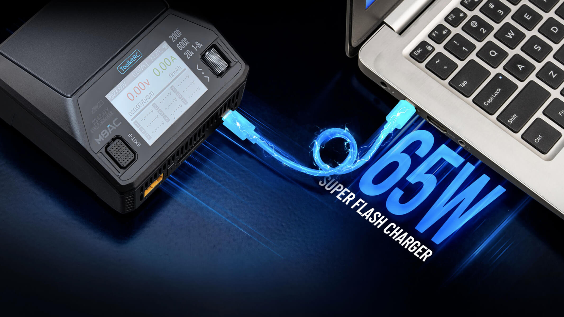 У корпусі M8AC інтегровано високошвидкісний порт USB-C з вихідною потужністю до 65 Вт (максимум 20 В), який дозволяє не лише заряджати акумулятори, але й слугувати джерелом живлення для зовнішніх пристроїв. Це означає, що під час роботи зарядної станції можна живити смартфон, планшет або інший гаджет без додаткових адаптерів — досить підключити його до USB-C виходу. USB-C підтримує стандарт fast charging, що забезпечує стабільну подачу струму і напруги в межах до 20 В, 65 Вт. Порт не лише постачає енергію, але й працює як вихід постійного струму (режим джерела живлення), де можна встановити константну напругу від 1 до 35 В та струм від 0,5 до 20 А, що відкриває можливість використання M8AC як універсального блок живлення для тестування або живлення сторонніх модулів.